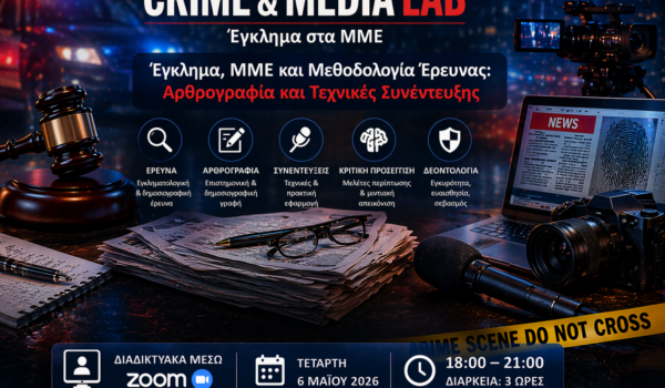 Σεμινάριο Εξ Αποστάσεως «Έγκλημα, ΜΜΕ και Μεθοδολογία Έρευνας: Αρθρογραφία και Τεχνικές Συνέντευξης»| 06-05-2026